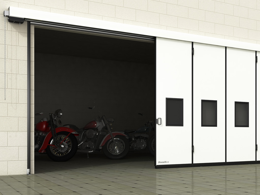 Откатные ворота без нижней направляющей серии ISG устанавливаются в помещениях промышленного назначения, где требуется перекрыть большие по размеру проемы (шириной до 9 000 мм, высотой до 6 000 мм): в складских и гаражных комплексах, автотранспортных депо, автосалонах и пр.